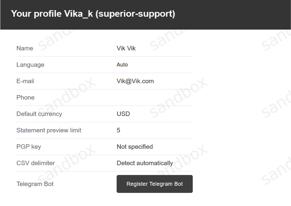 The calculated balance of the current period for each type of user is added to its current balance. The balance is maintained individually for each currency. For merchants, the balance is also detailed by the reseller, if available. The company’s balance sheet is not taken into account. The counterparty’s current balance is defined as the sum of the current balance of all its statements, minus paid and frozen funds.