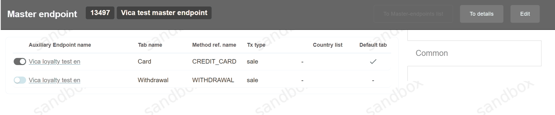 Click on the To details button to view Master Endpoint itself (filters, payment form, name and etc).